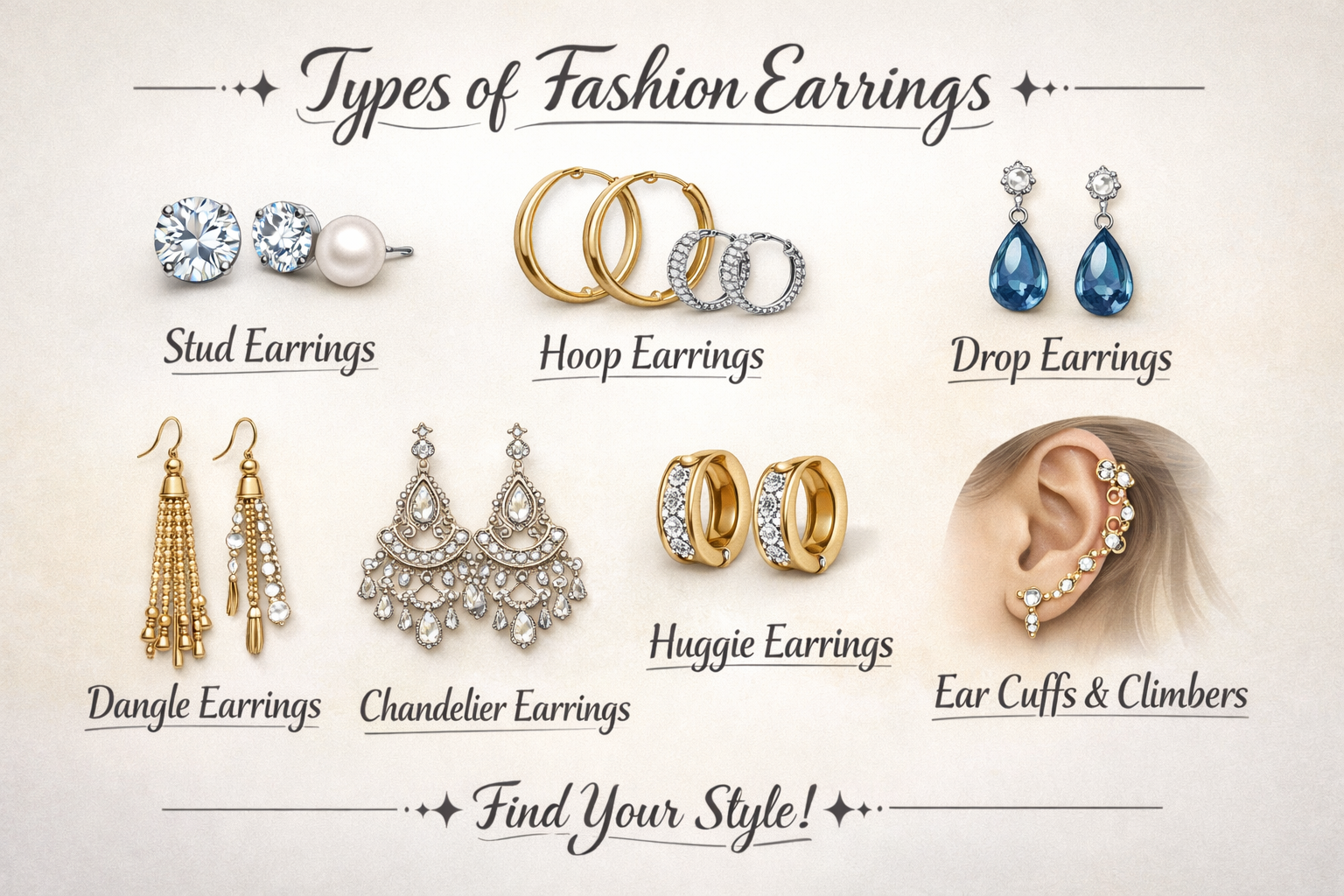 Earrings are one of the most versatile accessories in fashion jewelry. They can subtly enhance an everyday outfit or become the focal point of a bold, statement look. With so many designs available, it helps to understand the basic types of earrings and how they differ.